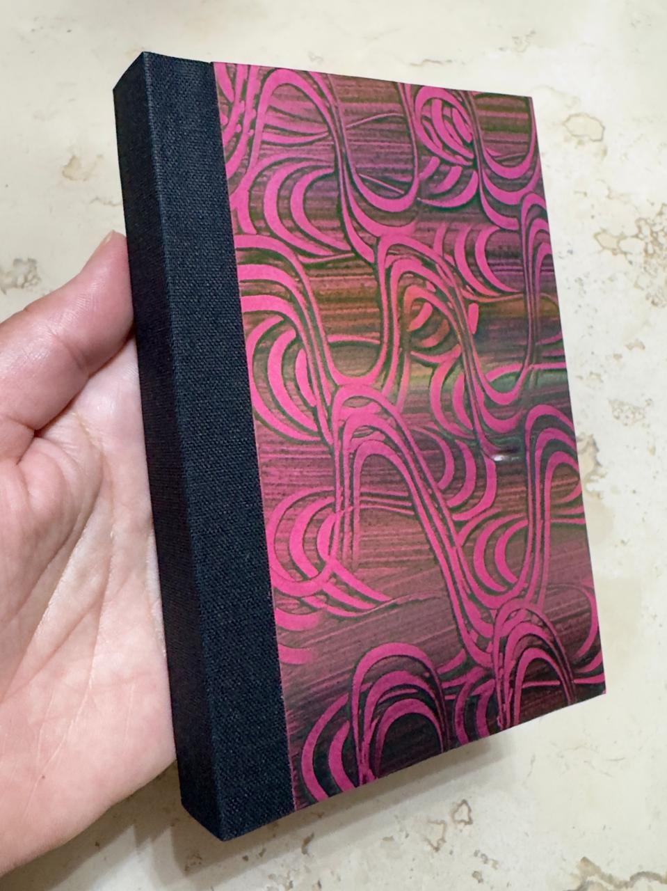 O curso contempla a confecção de um caderno de capas costuradas (encadernação Sewn Board Binding), no tamanho A6, que permite uma ampla abertura do livro (180º).